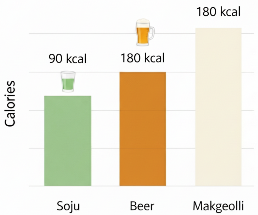 - 소주 1잔 (50ml): 90kcal