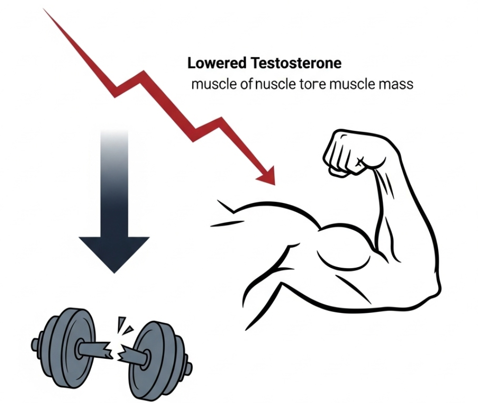 알코올은 테스토스테론 수치를 떨어뜨리고 근육단백질을 분해시켜 근육 생성과 체지방 제거를 방해합니다.