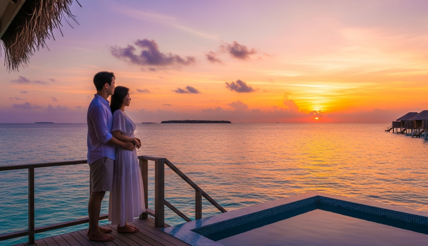 몰디브는 세상에서 가장 완벽한 휴식과 프라이버시, 그리고 럭셔리한 경험을 제공합니다. 오버워터 빌라에서 바라보는 석양과 에메랄드 바다의 추억은 평생 두 분의 마음 속에 소중하게 간직될 것입니다.