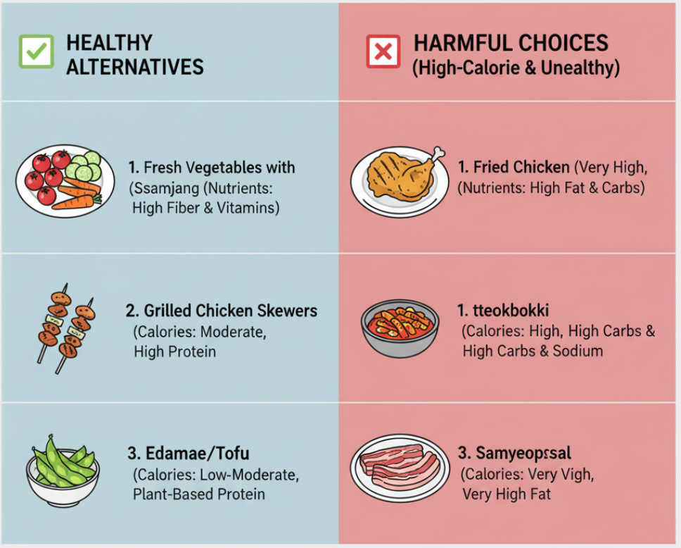 - "건강한 대안 안주 vs 위험한 안주 비교표"